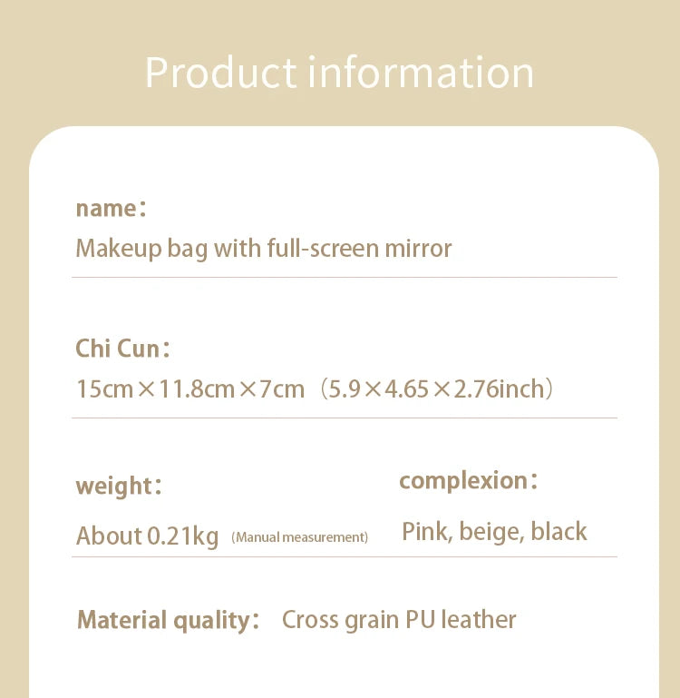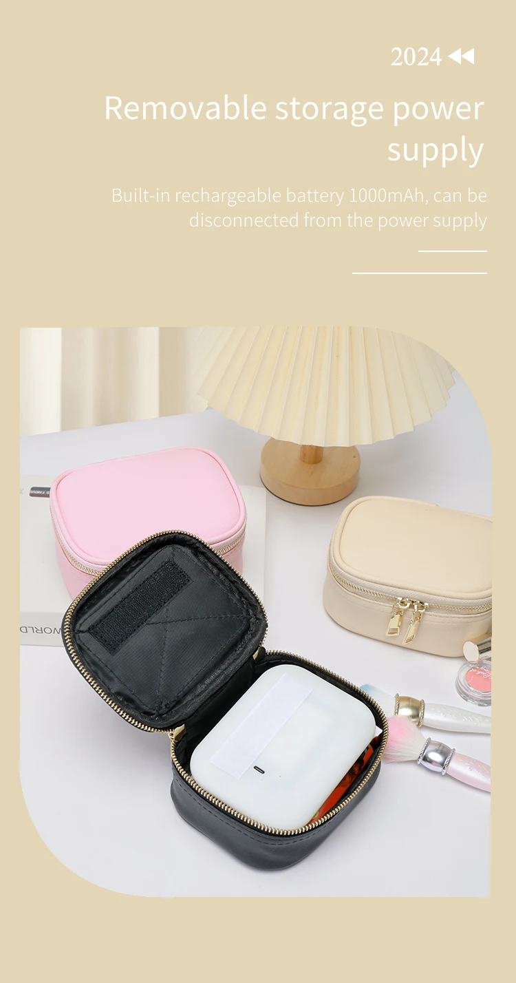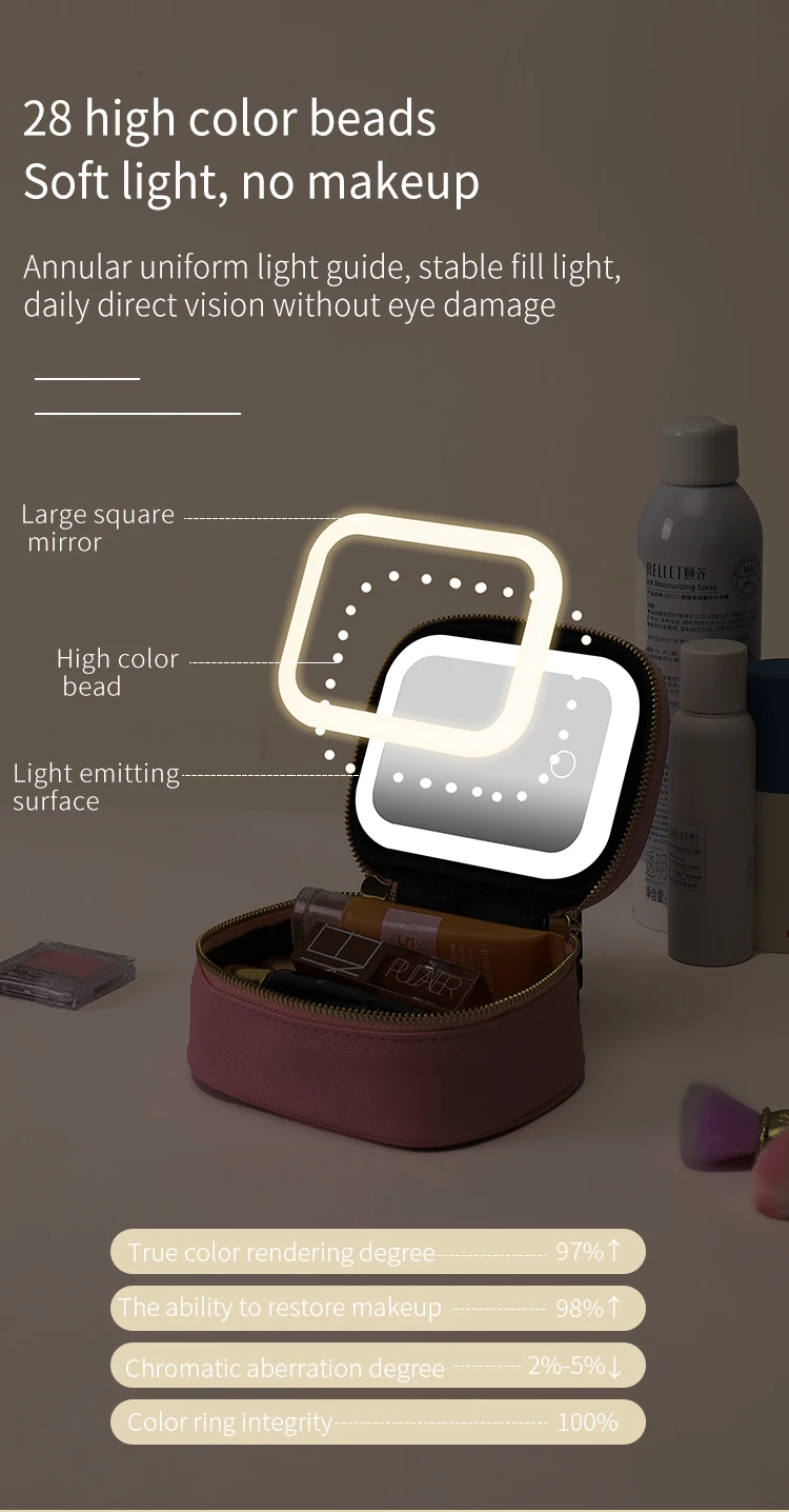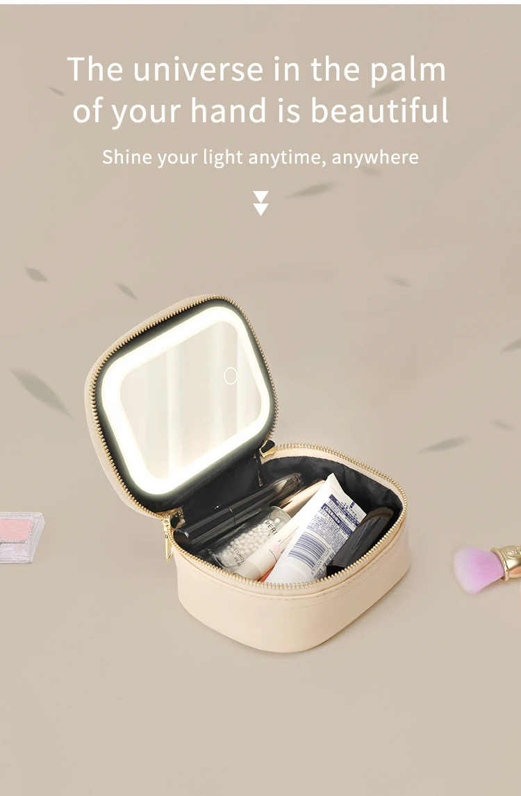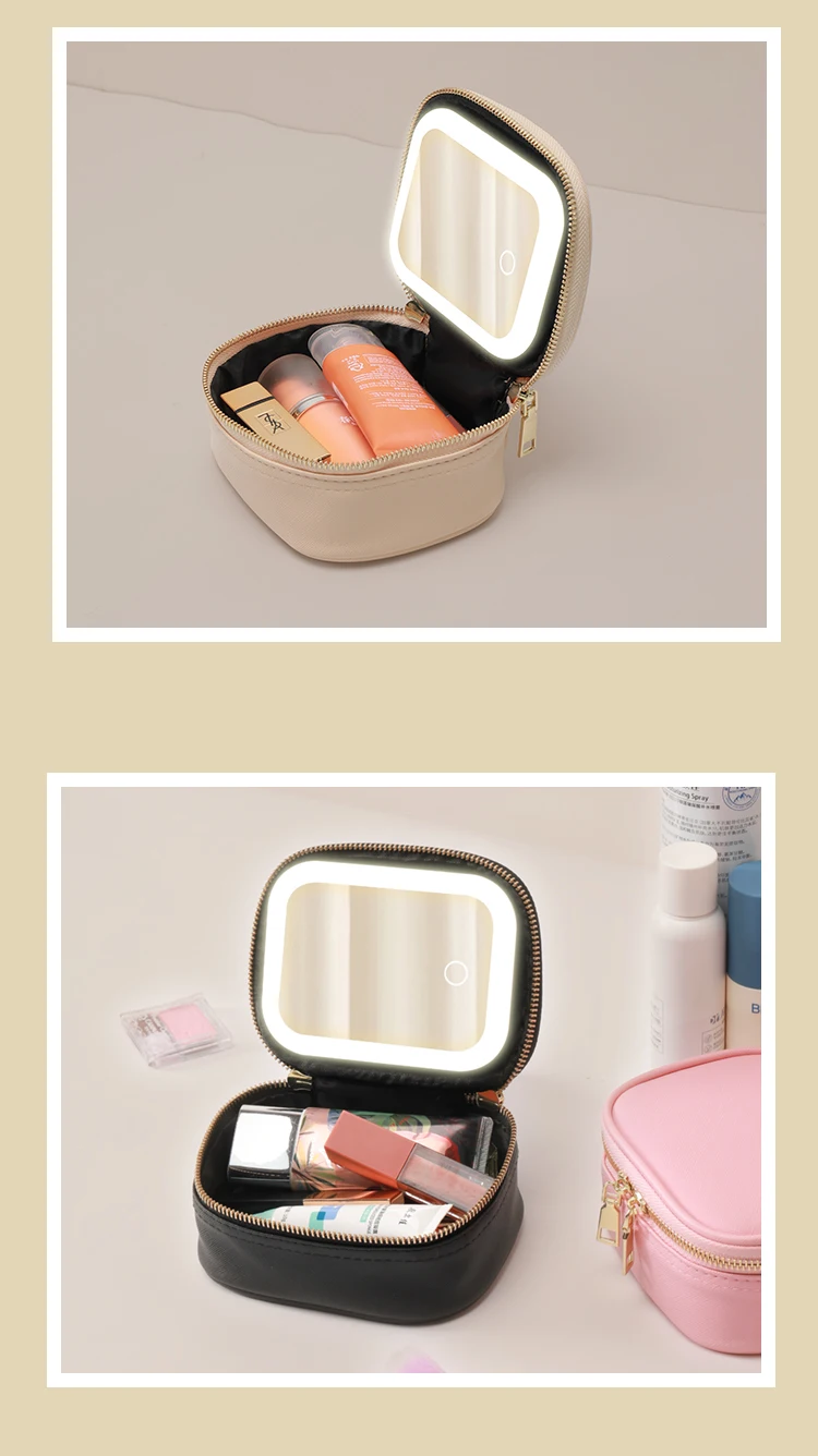 Rechargeable Travel Makeup Bag With LED Mirror, Compact Touch Screen Tabletop Cosmetic Mirror, 3 Colors Light